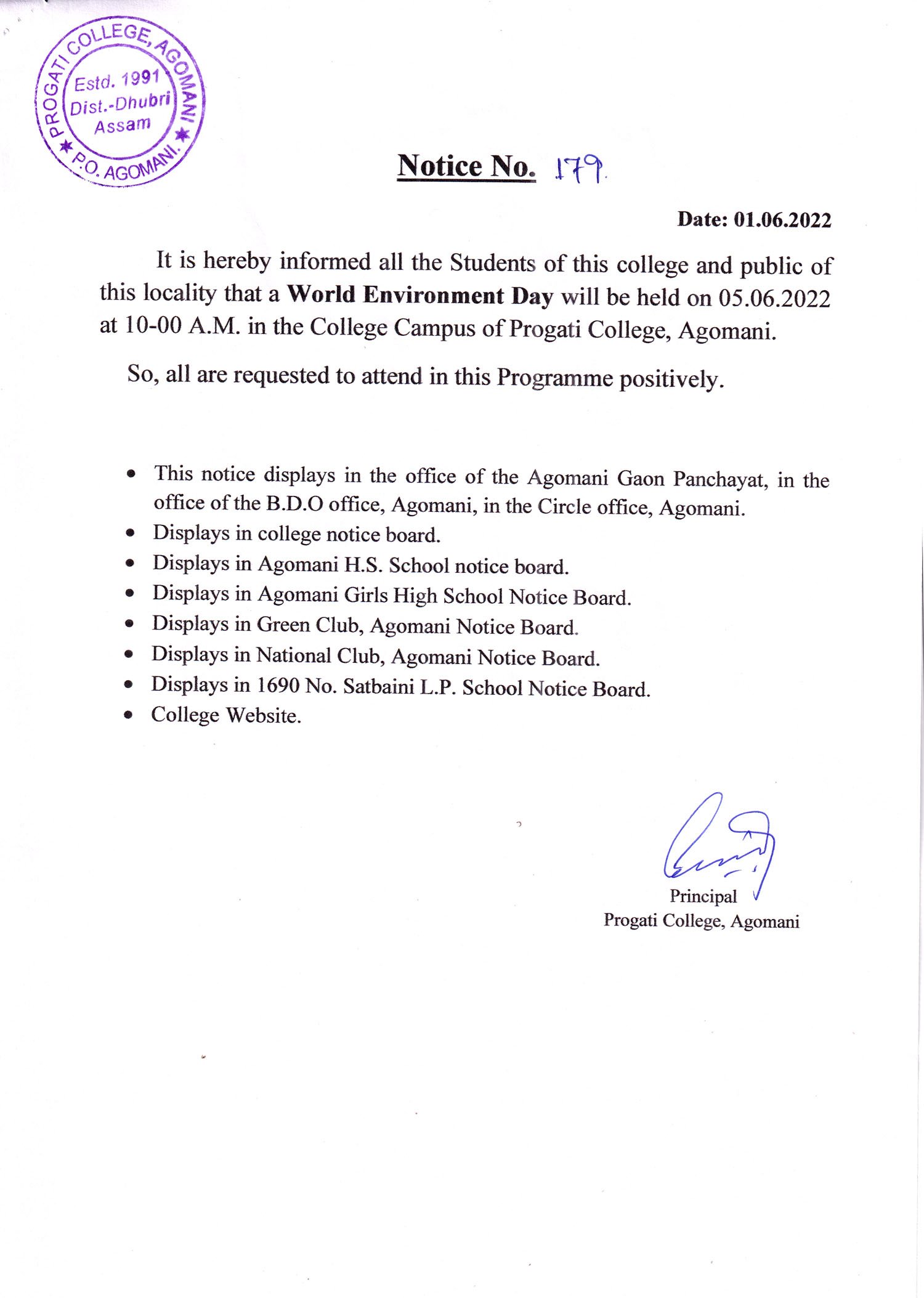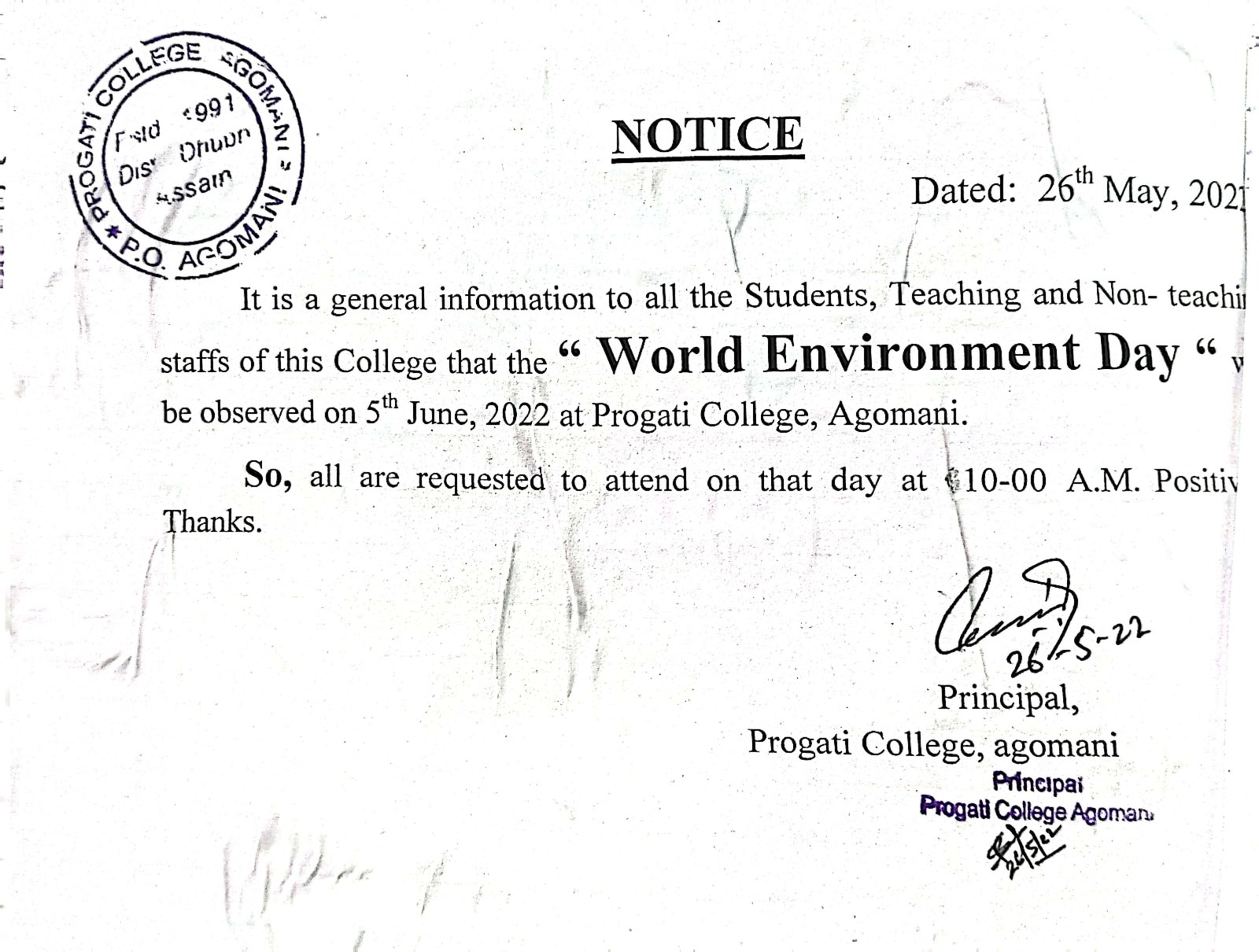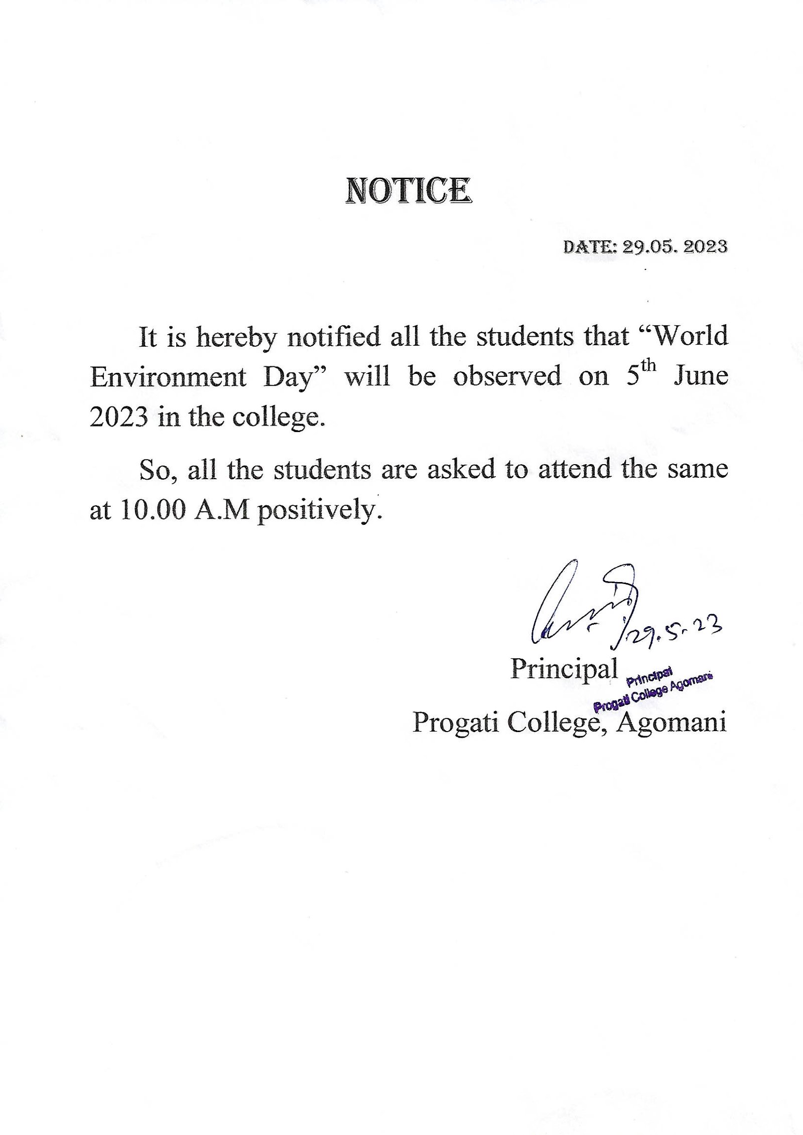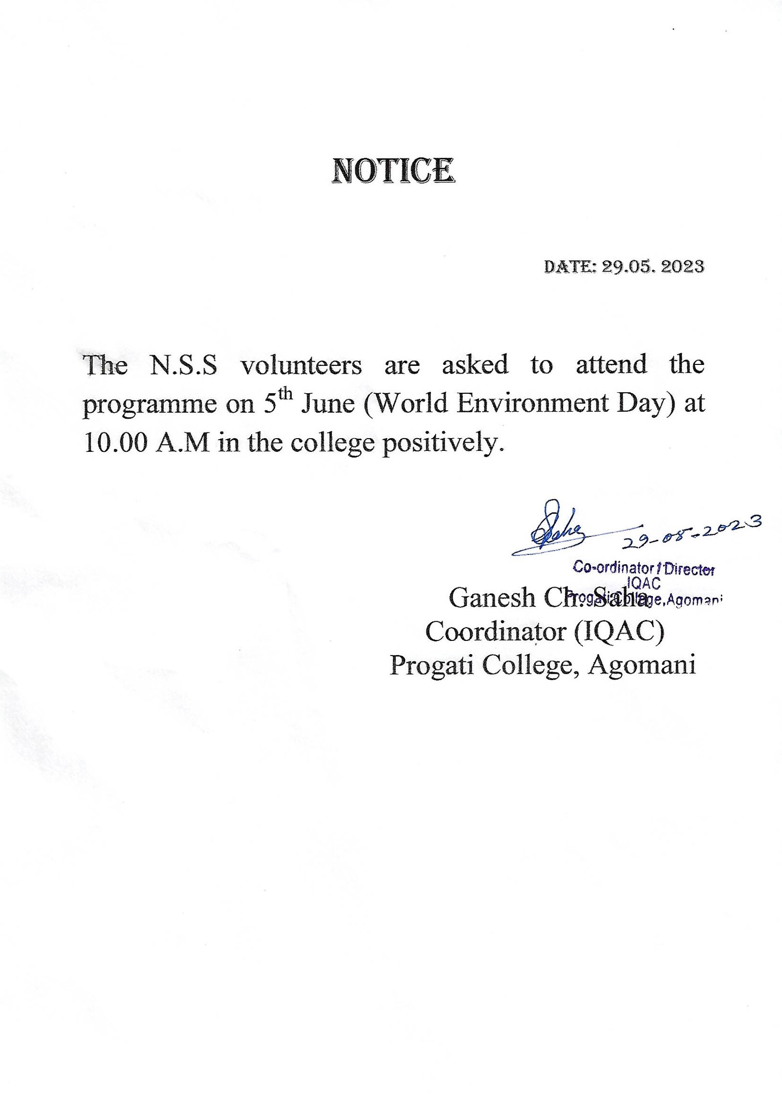 NOTICE FOR WORLD ENVIRONMENT DAY |