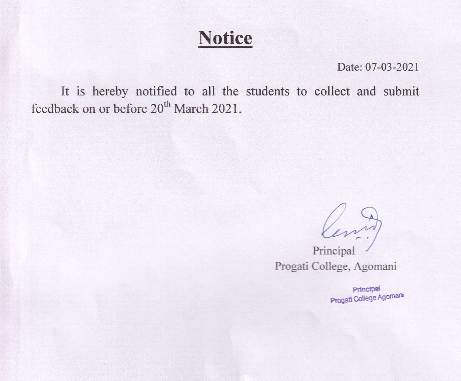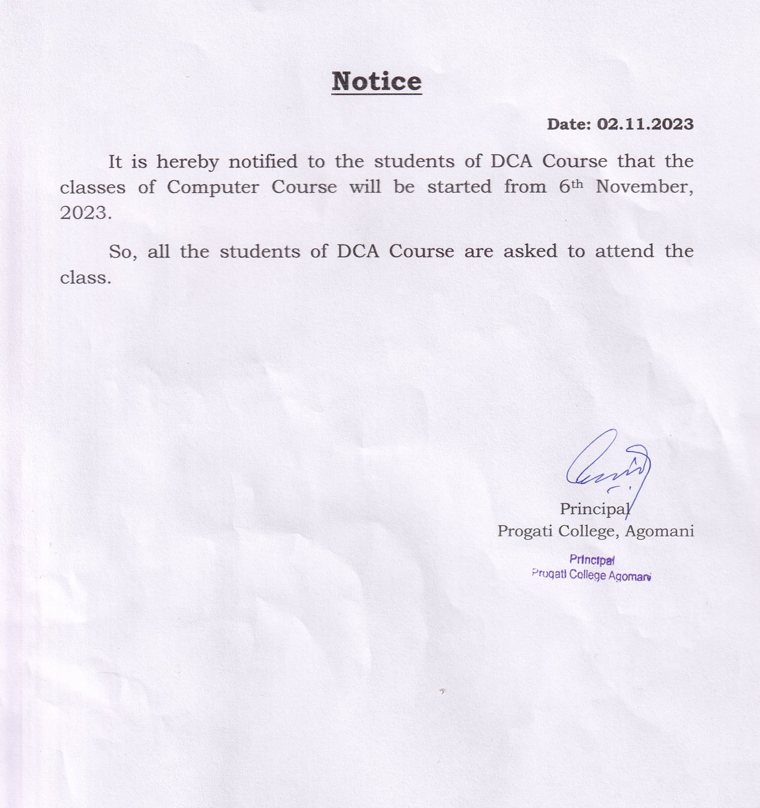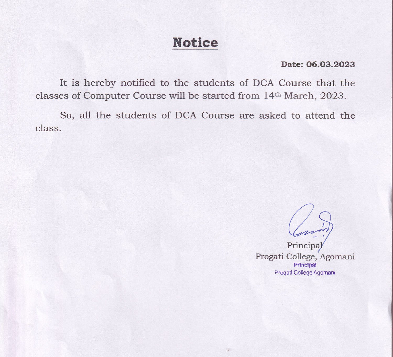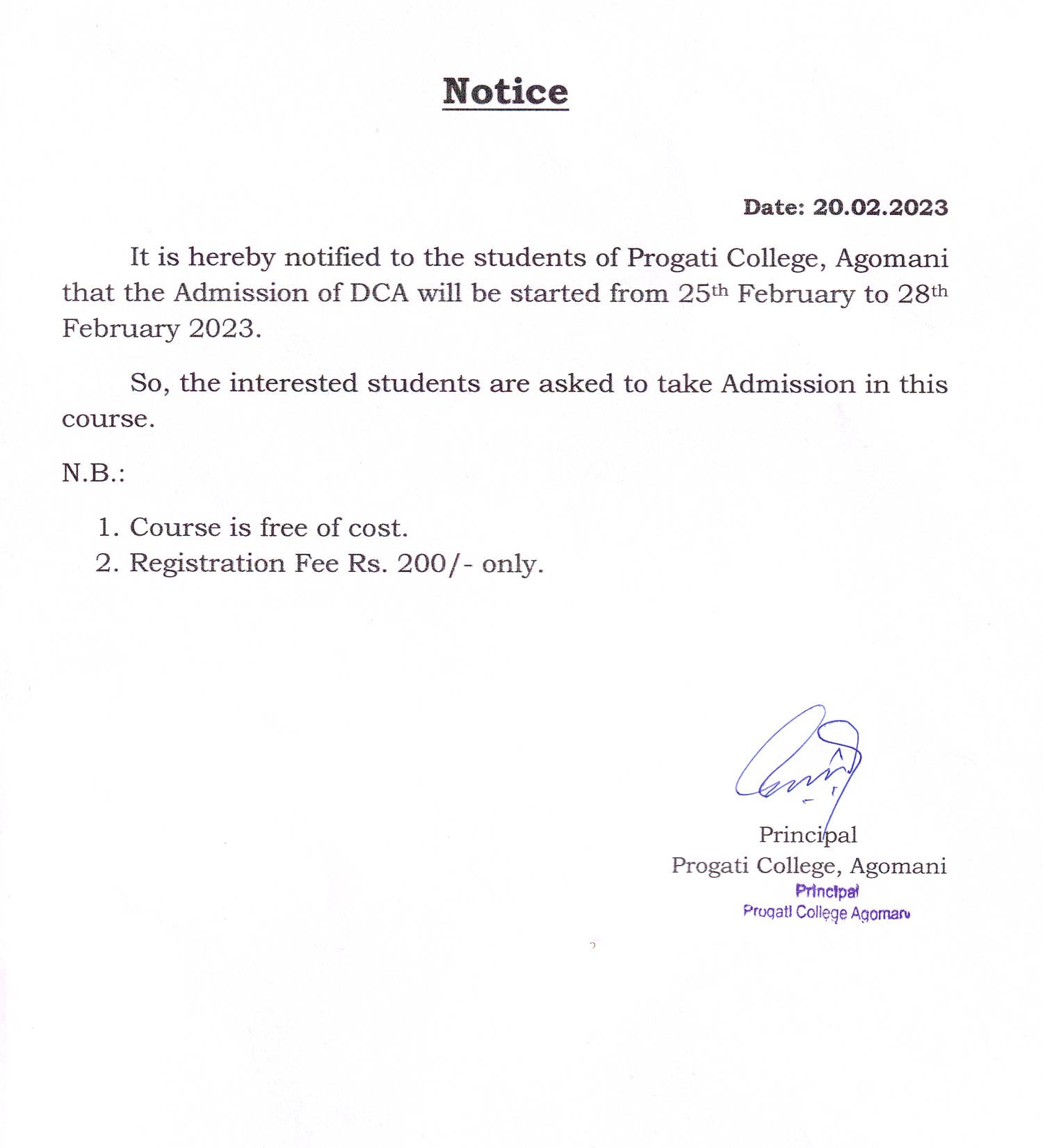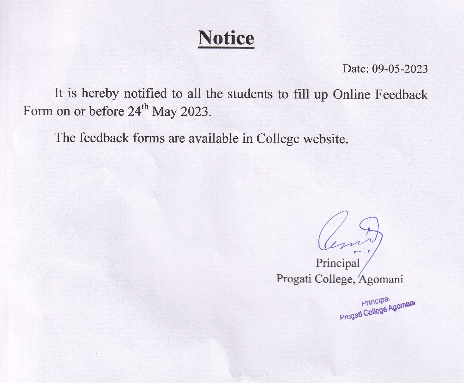 Revise Notice for Admission Fee of B.A. 3rd Sem & 5th Sem 2024 Progati College, Agomani |