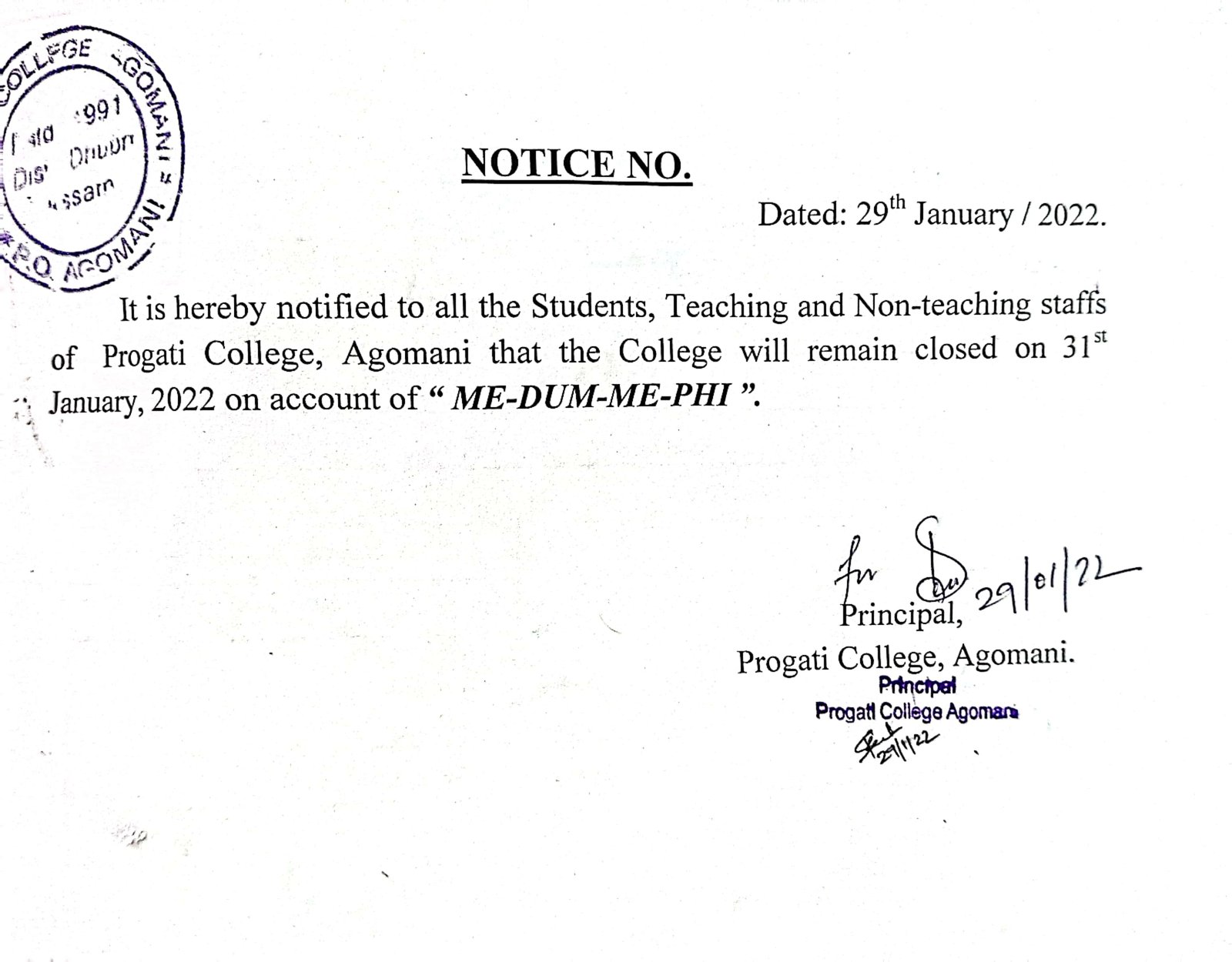 Notice for ME-DUM-ME-PHI |