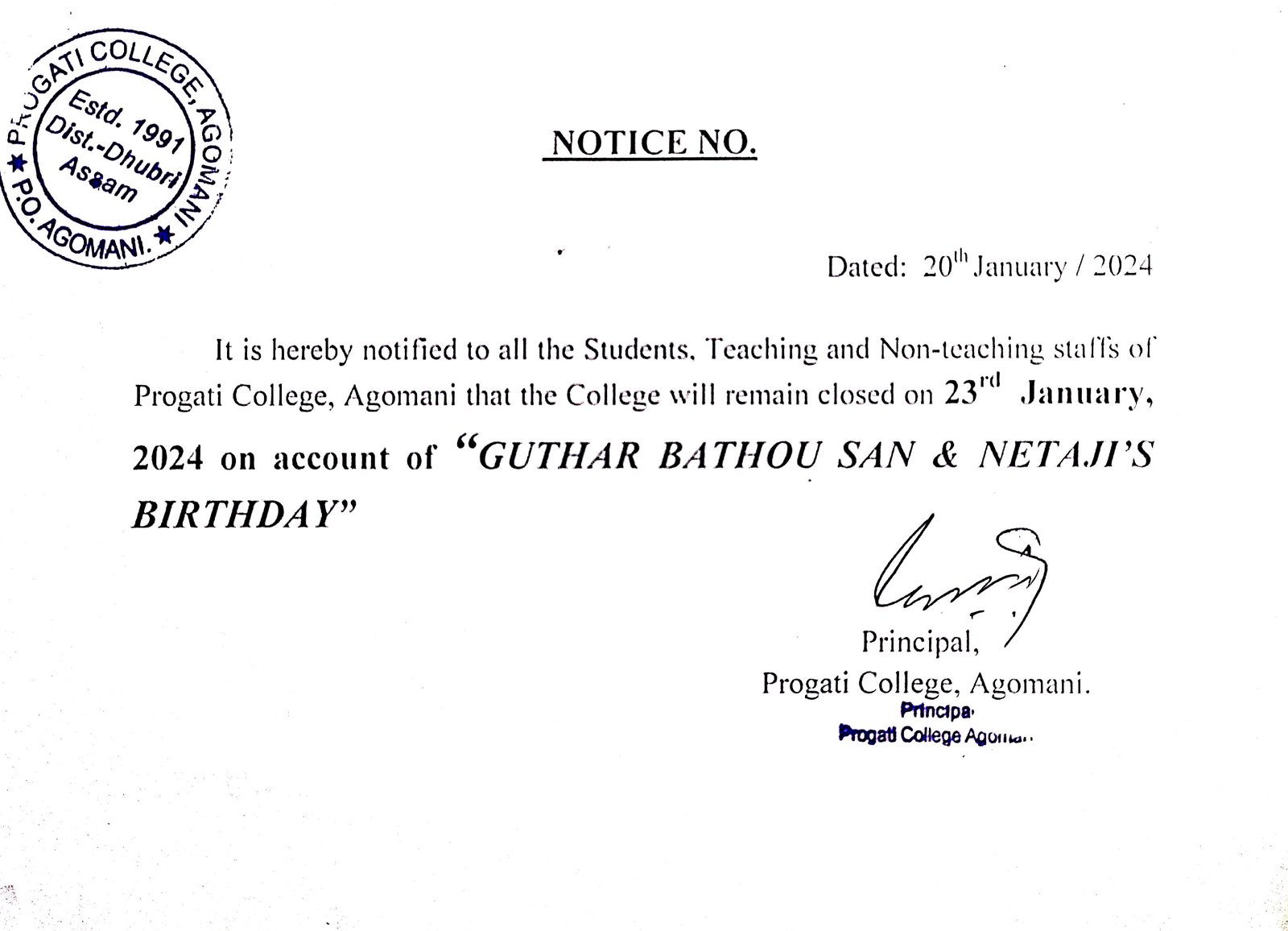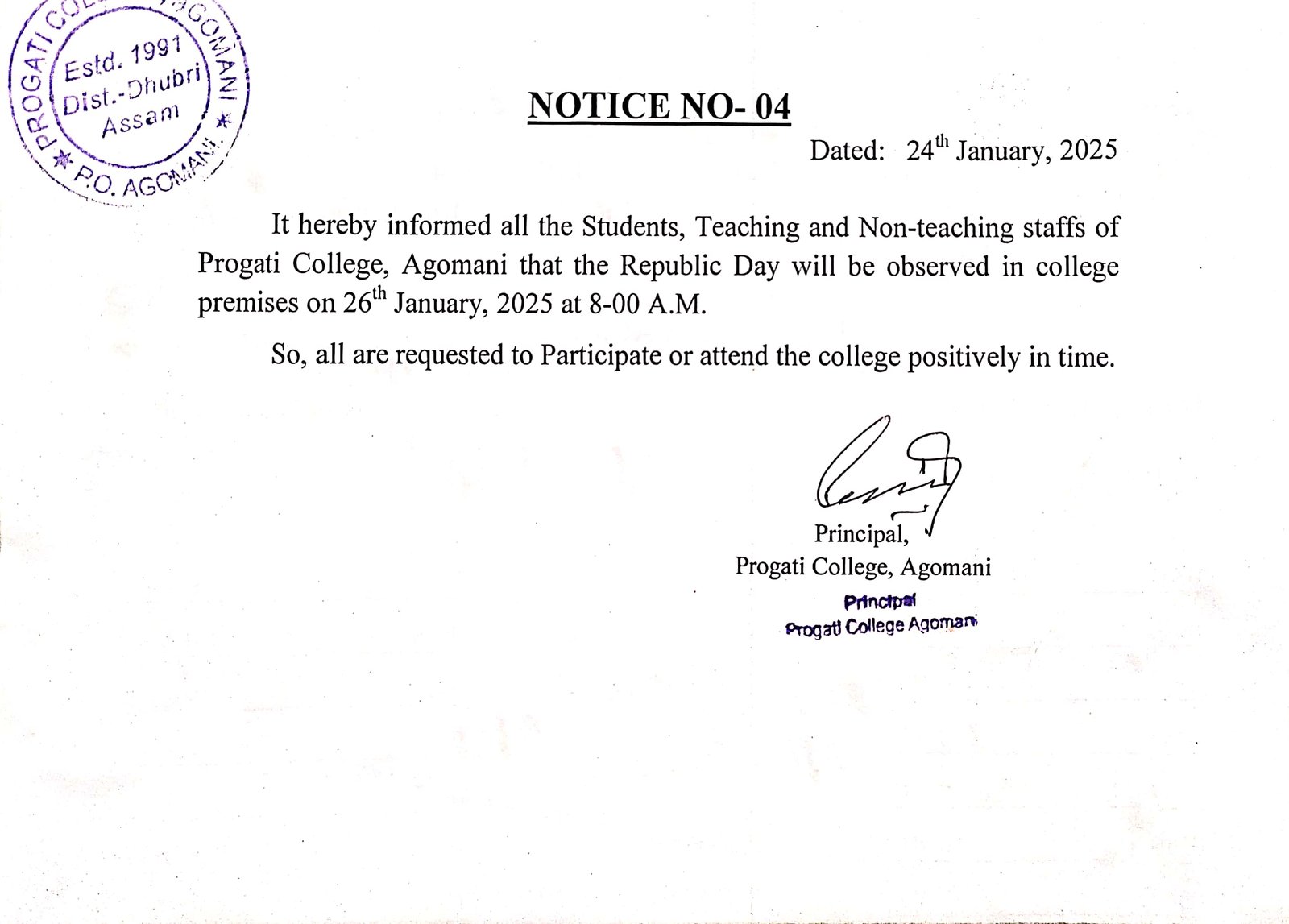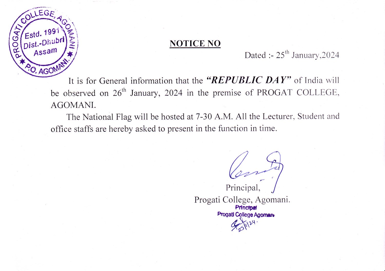 Notice for Republic Day |
