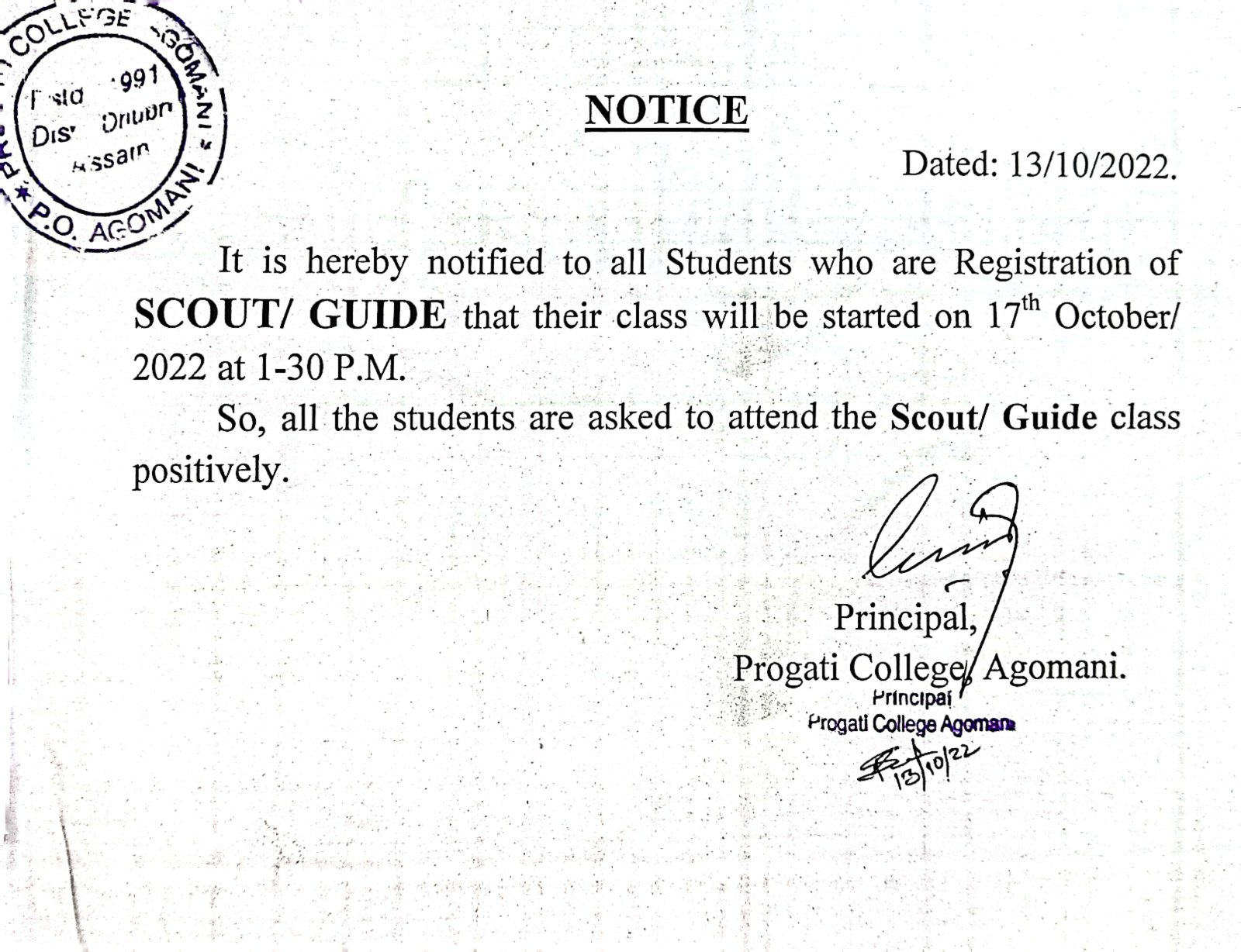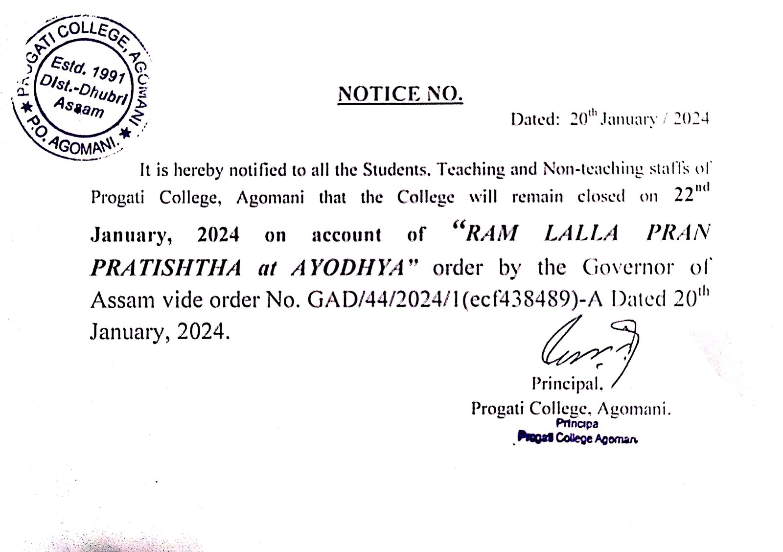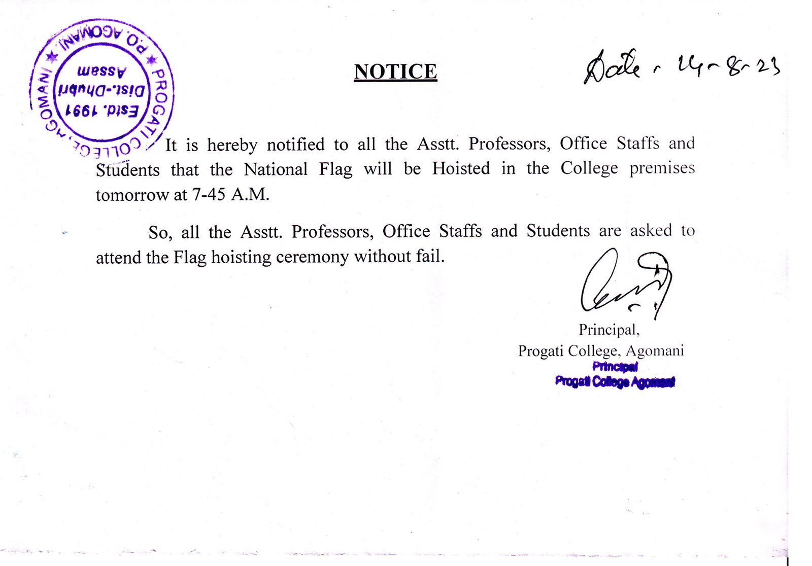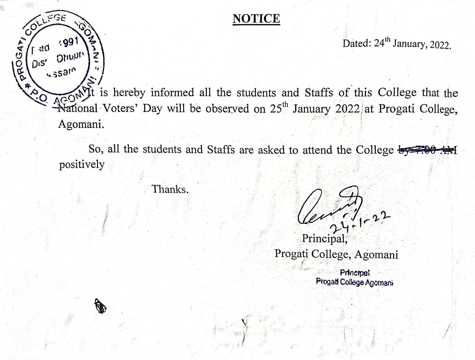 Notice for Republic Day |