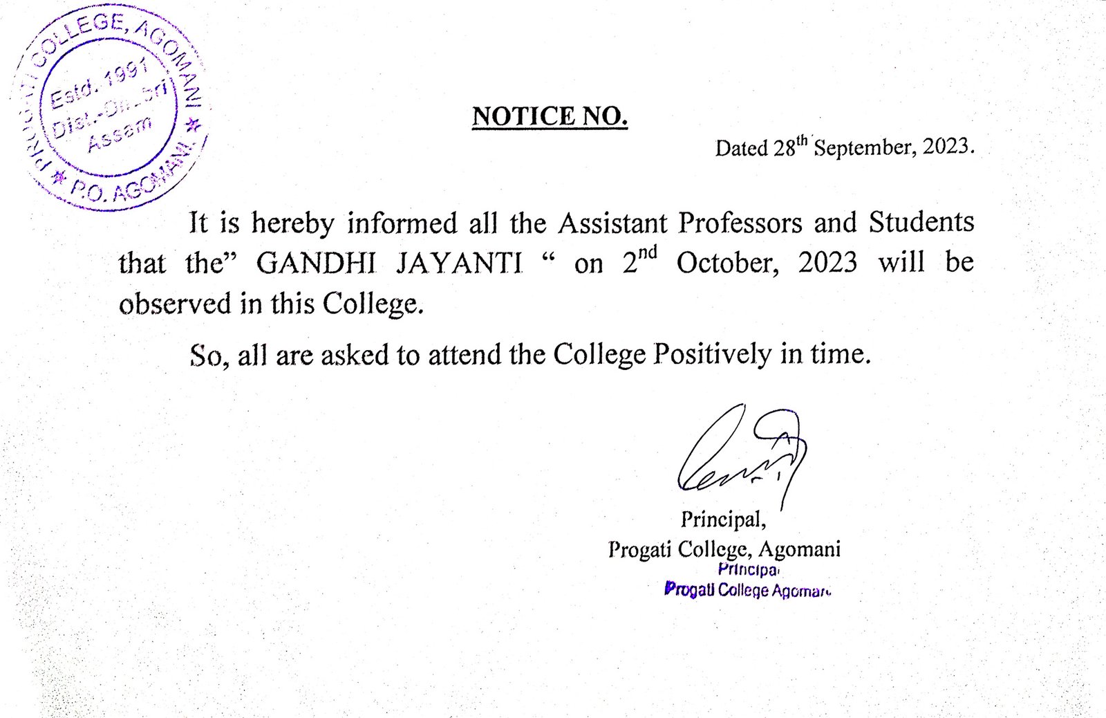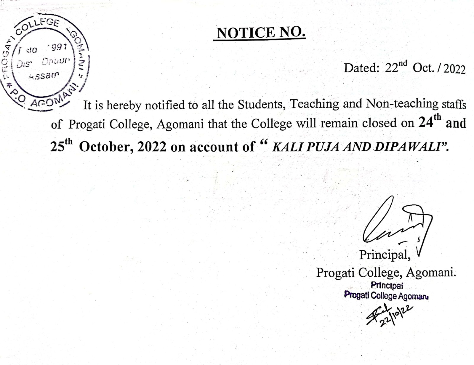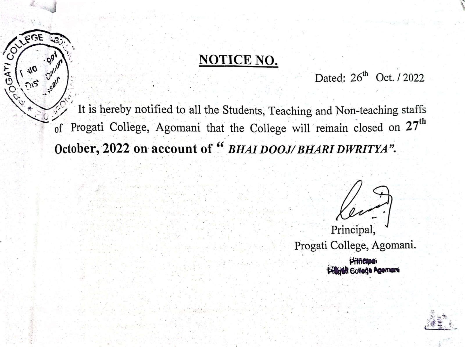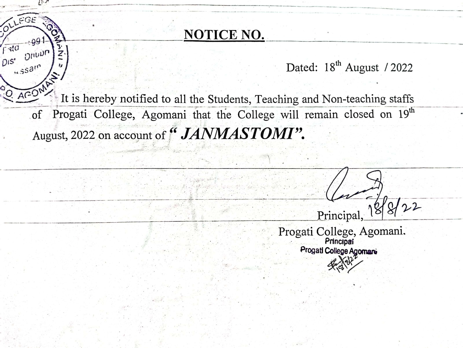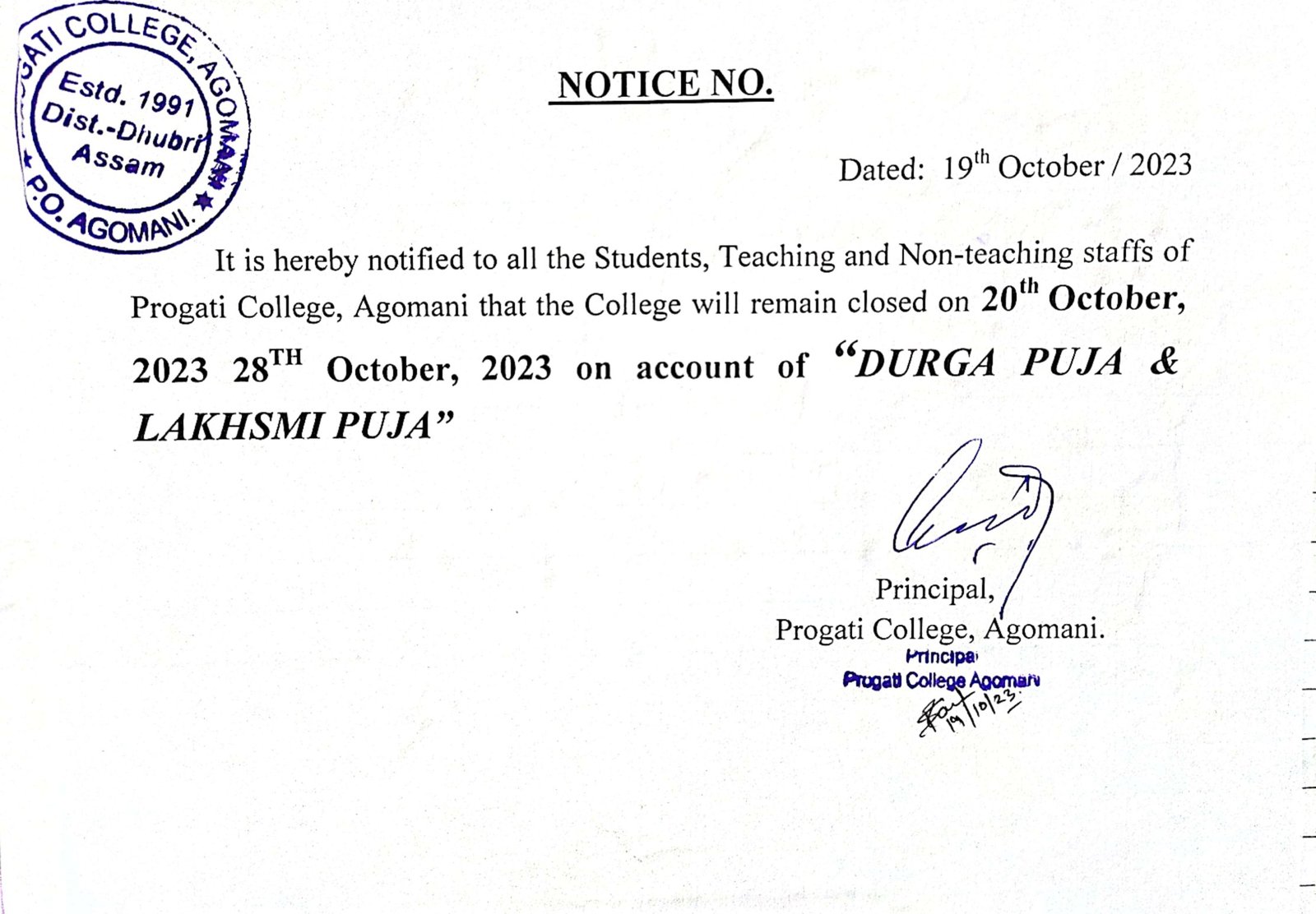 Notice for Bohag Bihu & Good Friday |