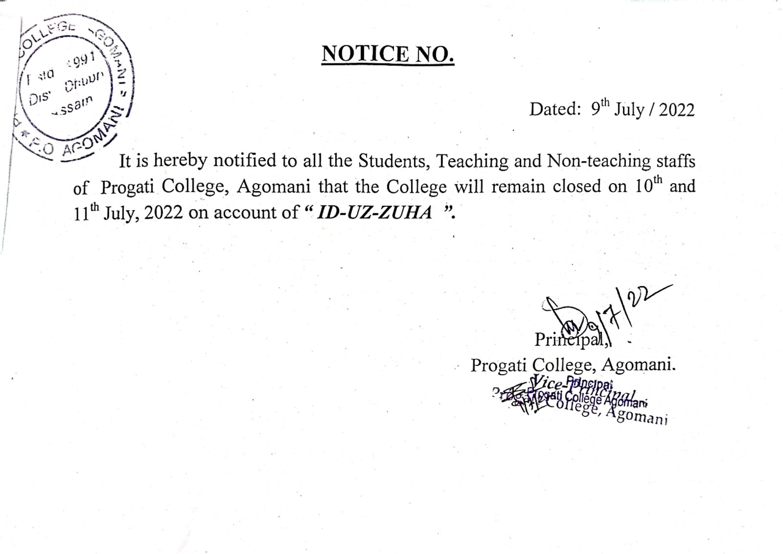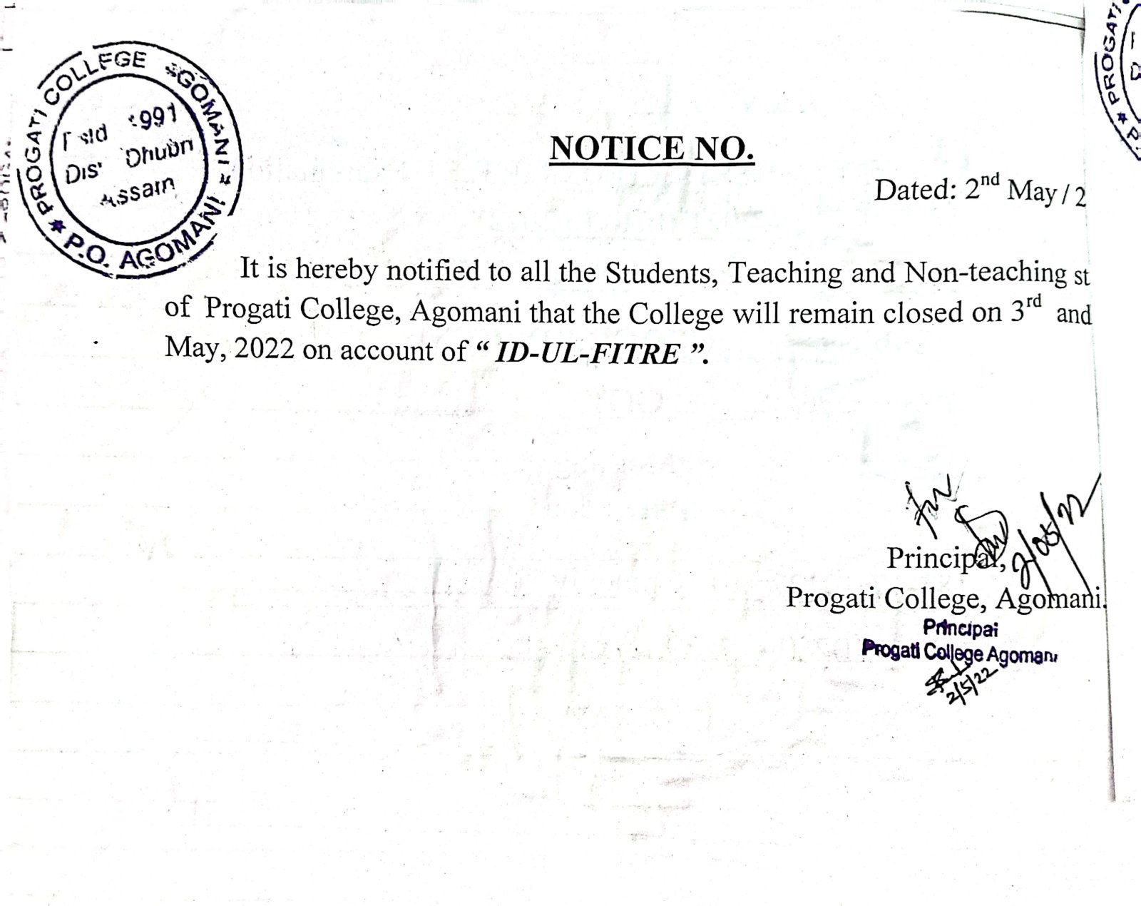Notice for ID-Ul-Fitre and Bohag Bihu 2024 |