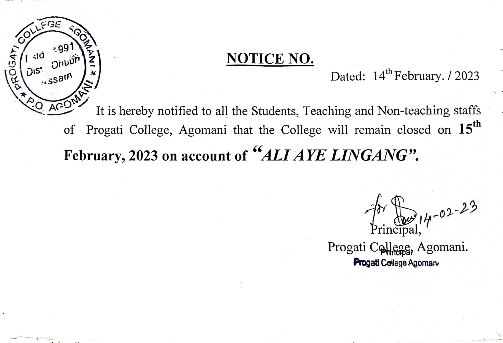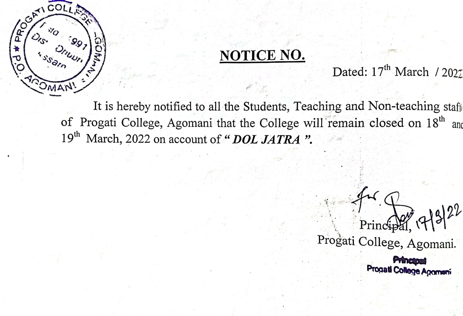 Notice for Dol Jatra |