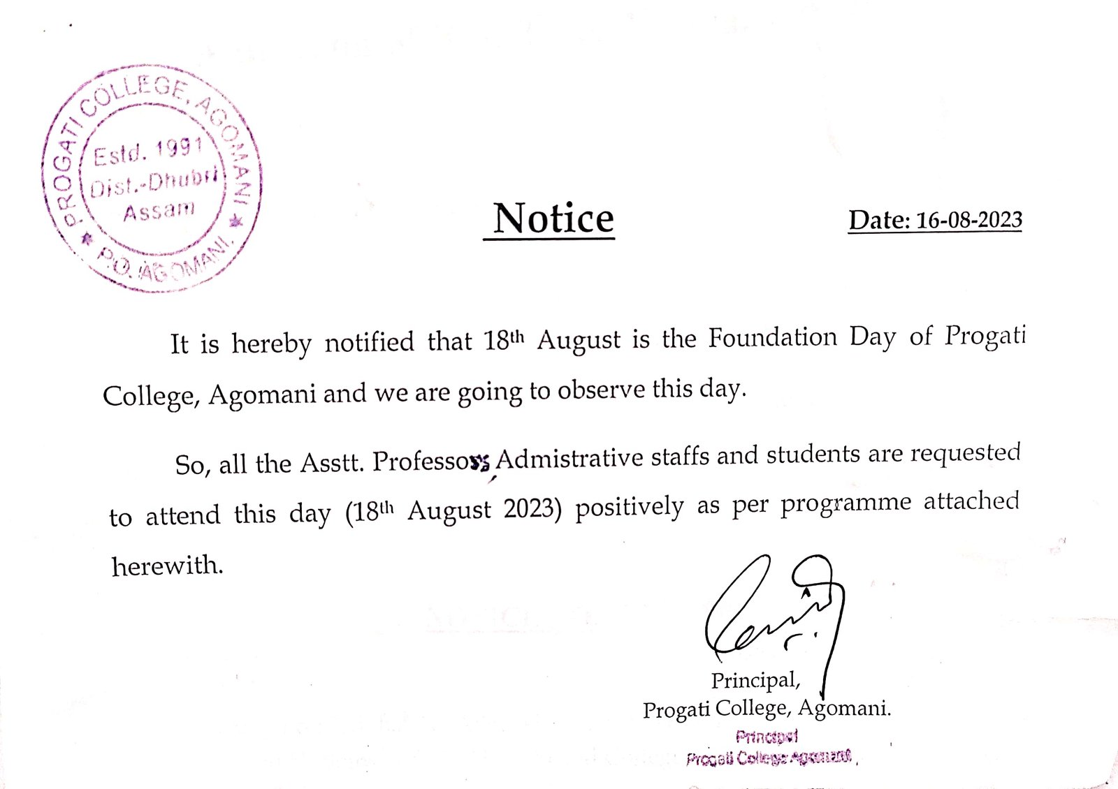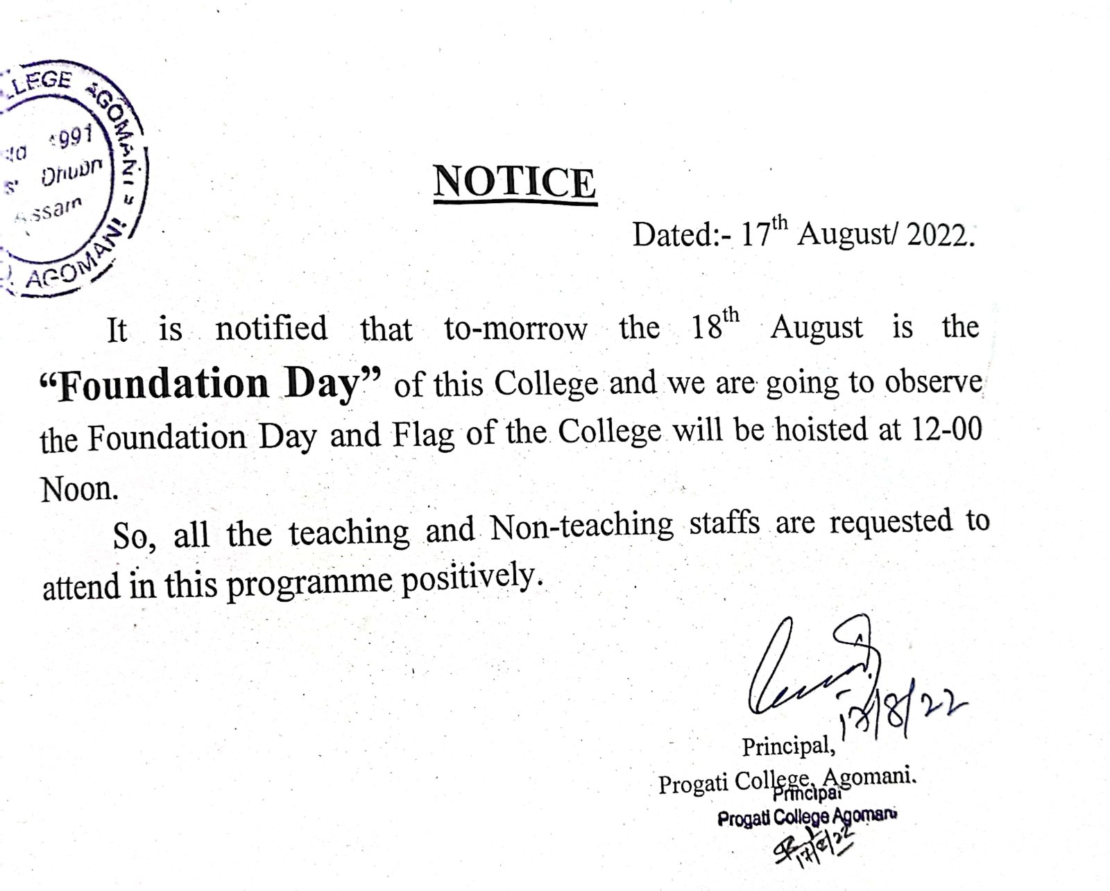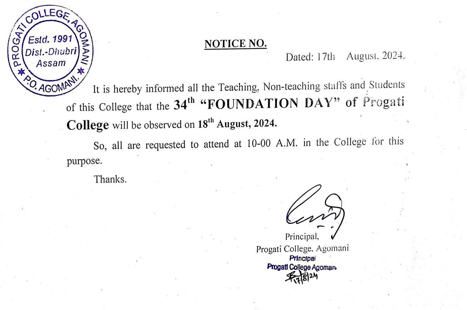 Notice for 34th Foundation Day 2024 |
