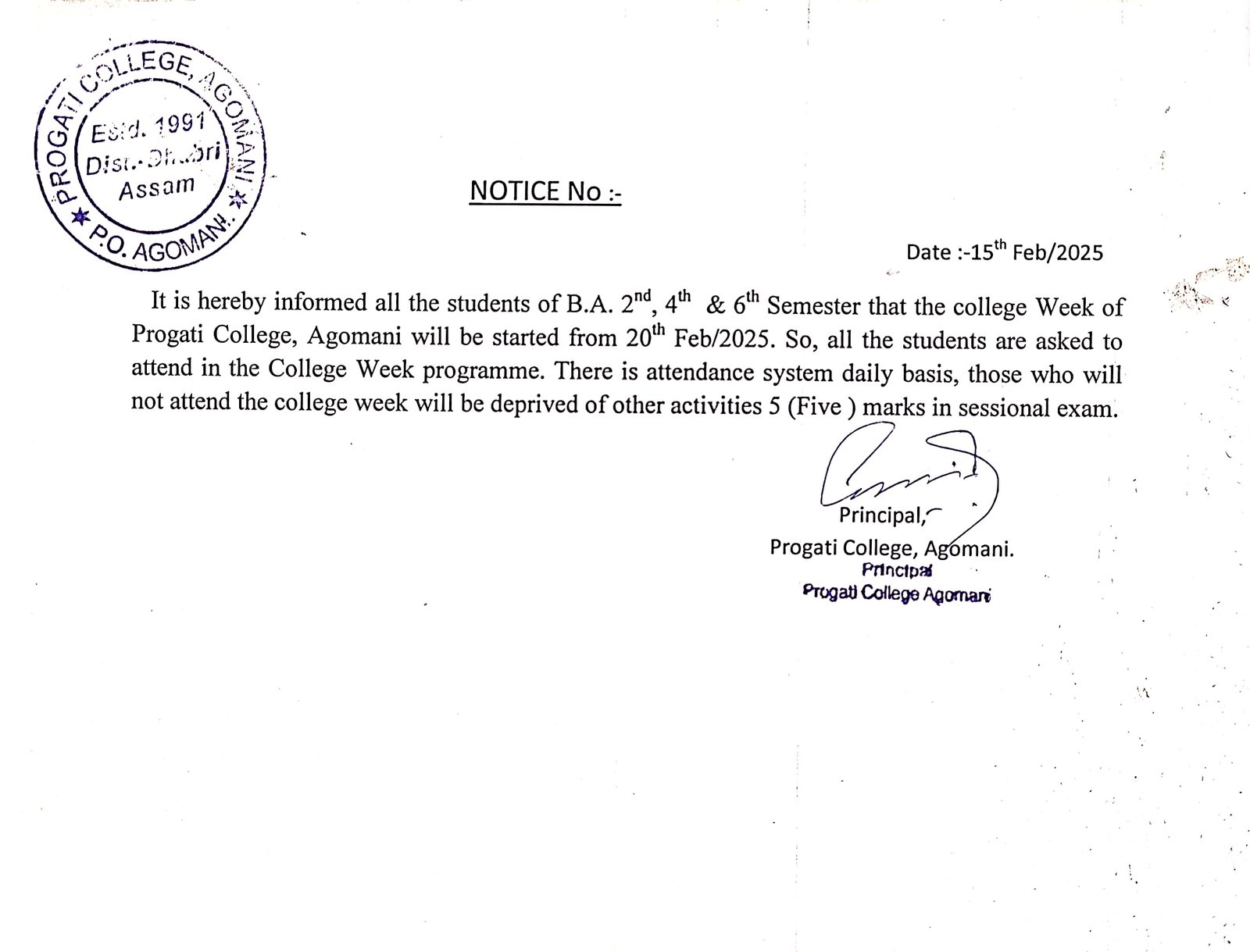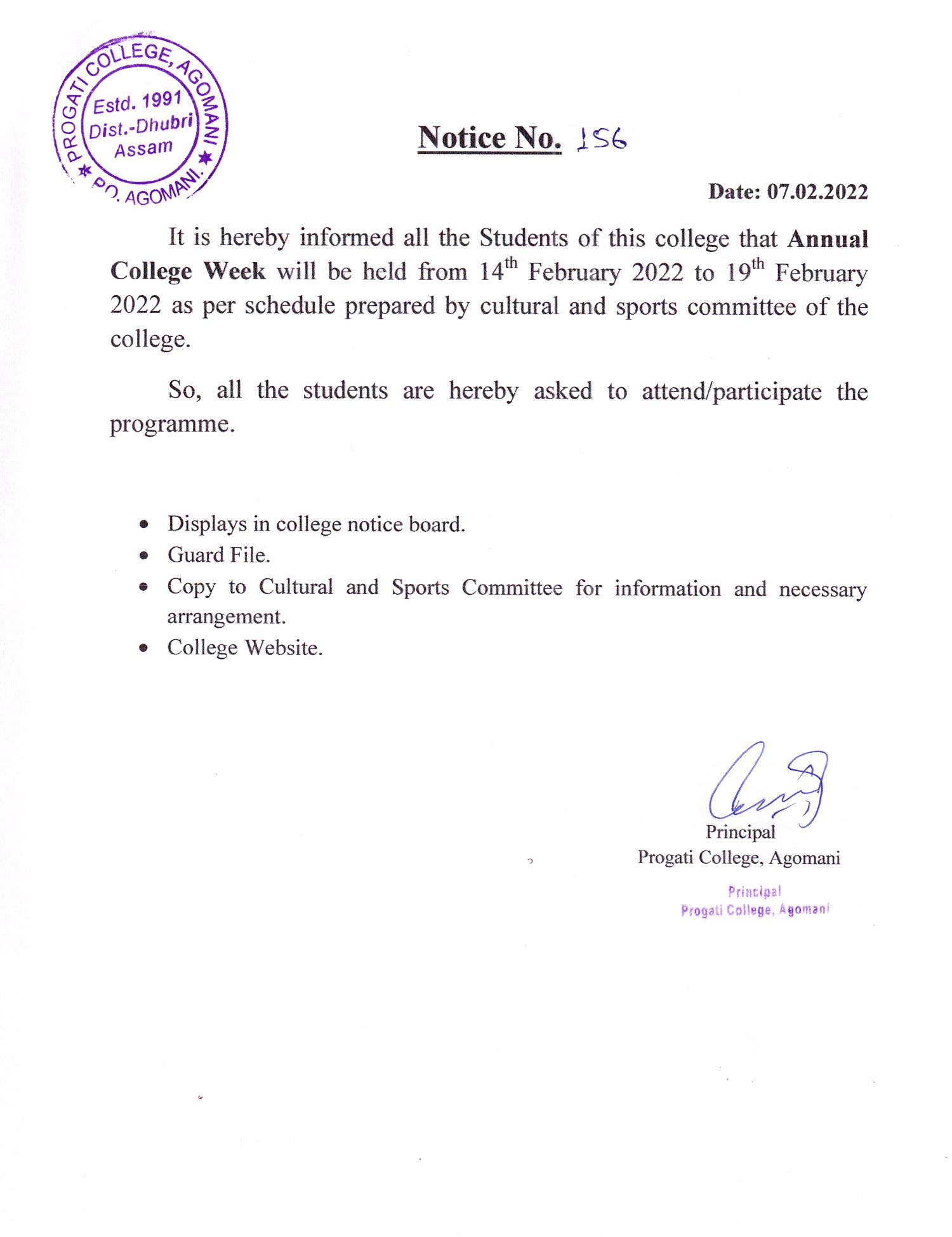 Notice for Annual College Week |