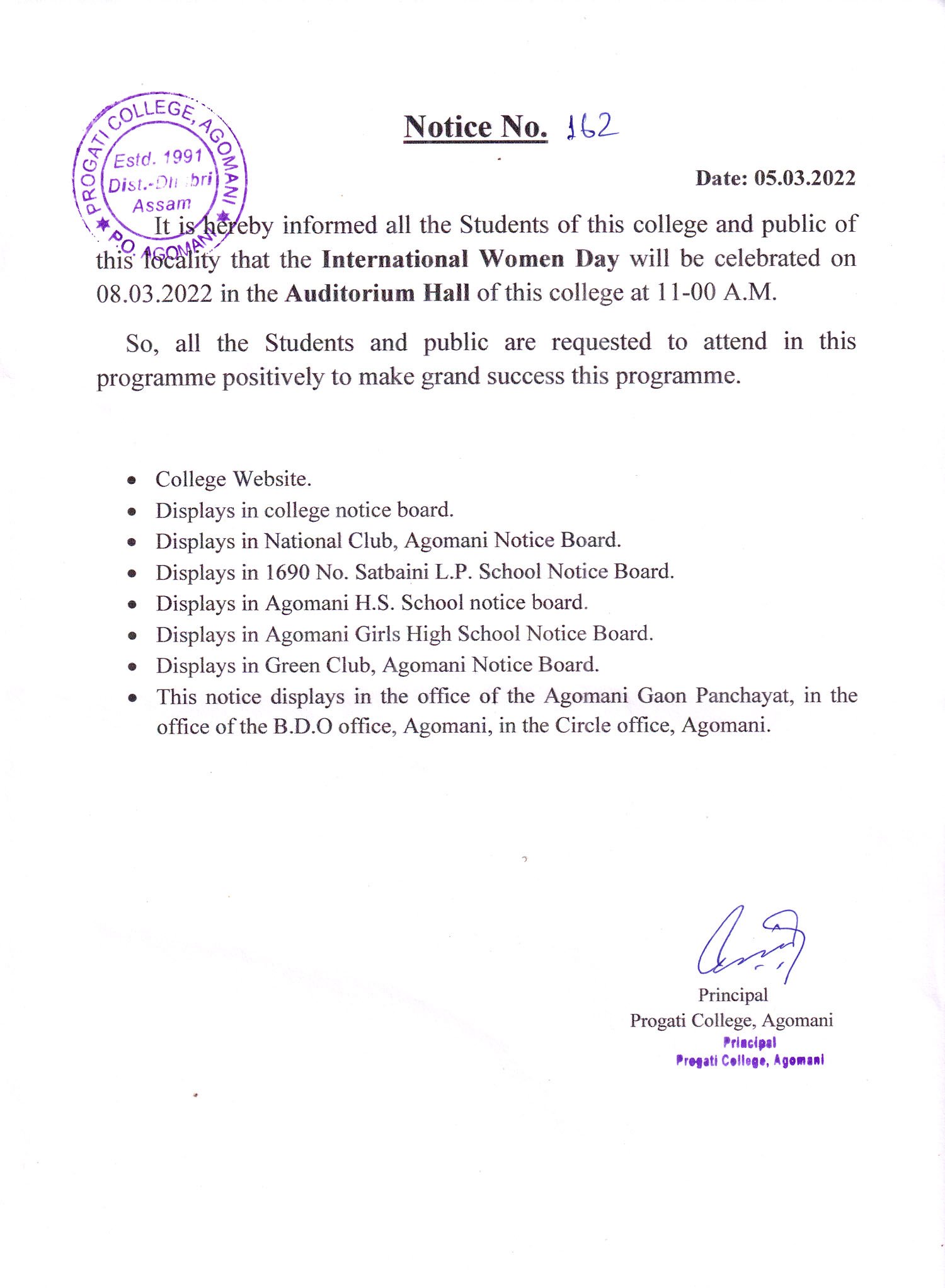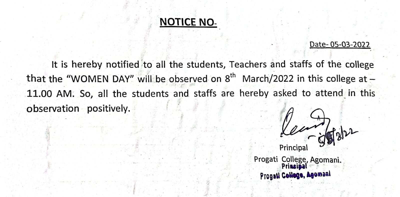 Notice for Women Day |
