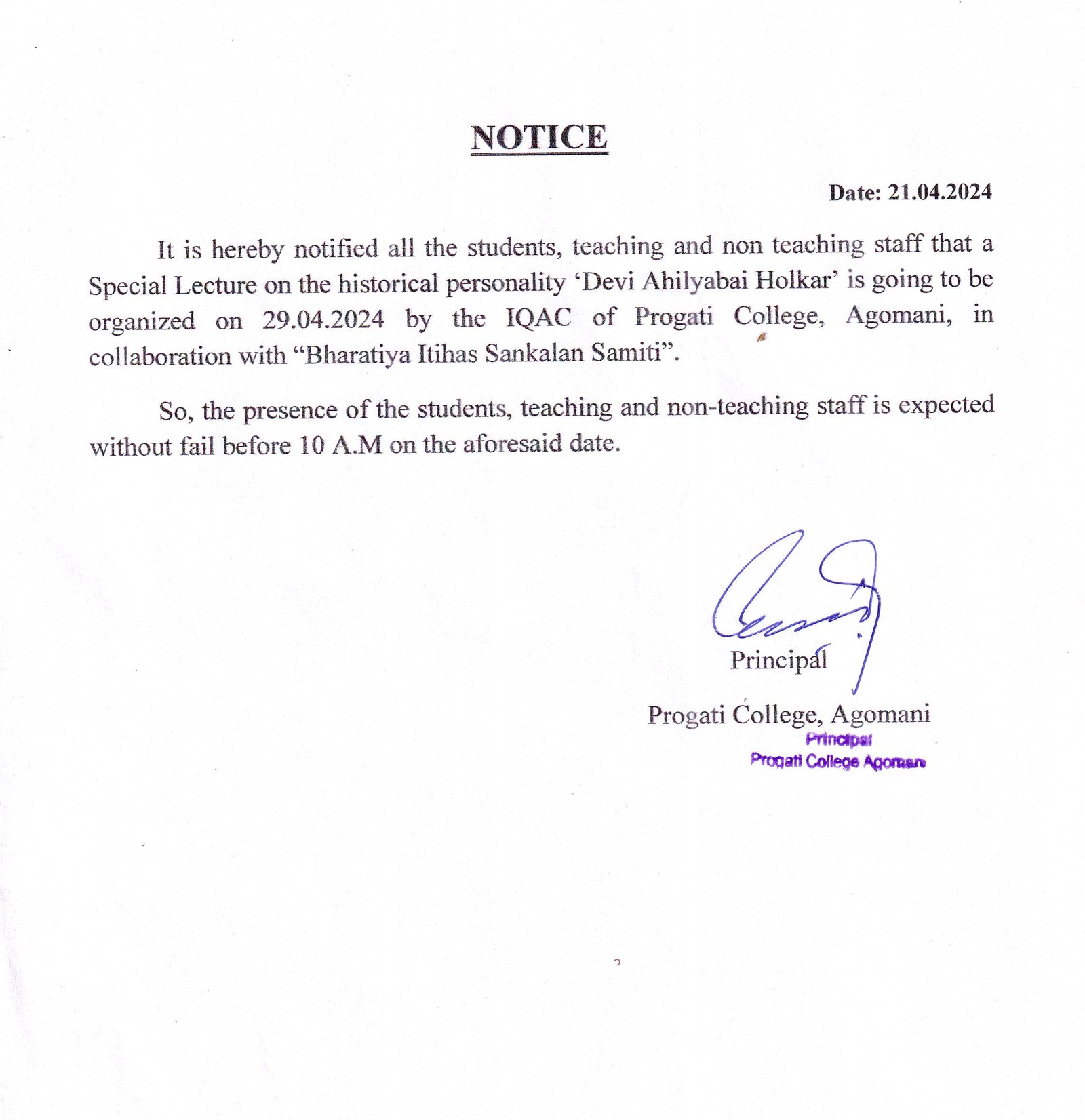 Notice for One Day Special Programme on Devi Ahilyabai Holkar 2024 |