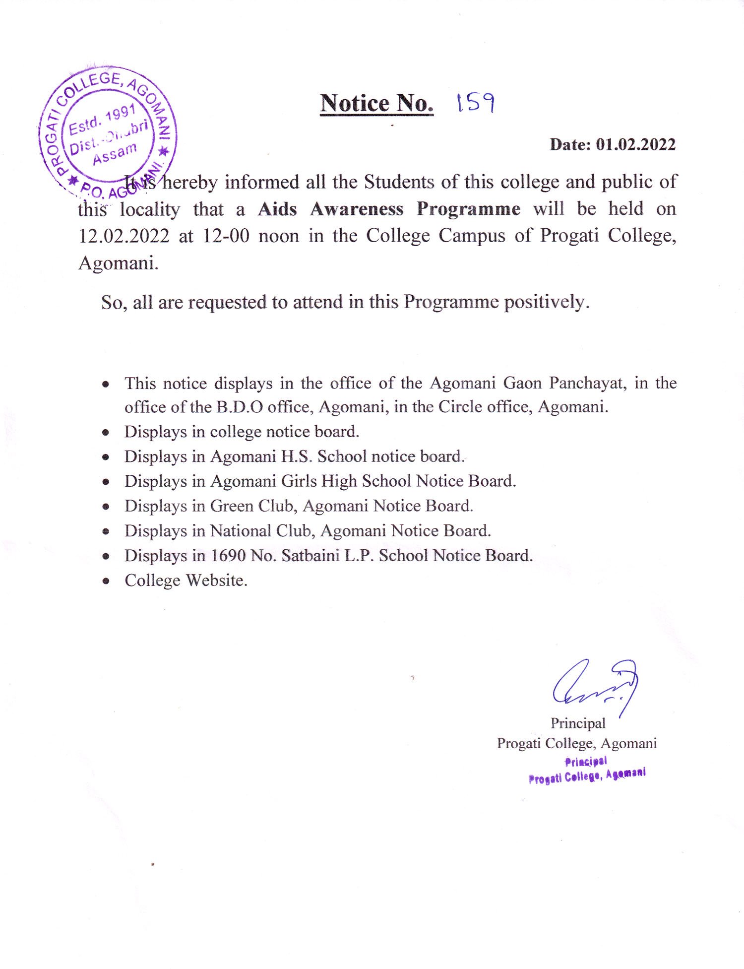 Notice for Aid Awareness Programme |