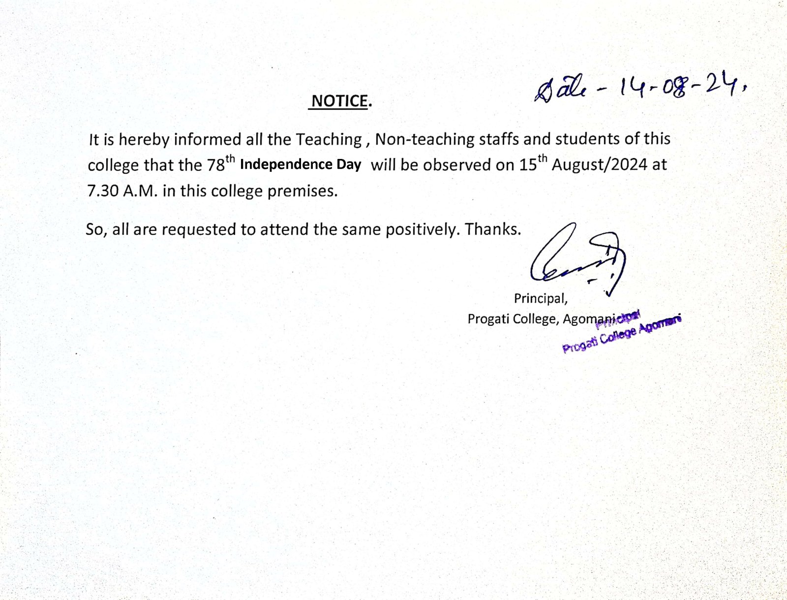 Notice for Independence Day 2024 |
