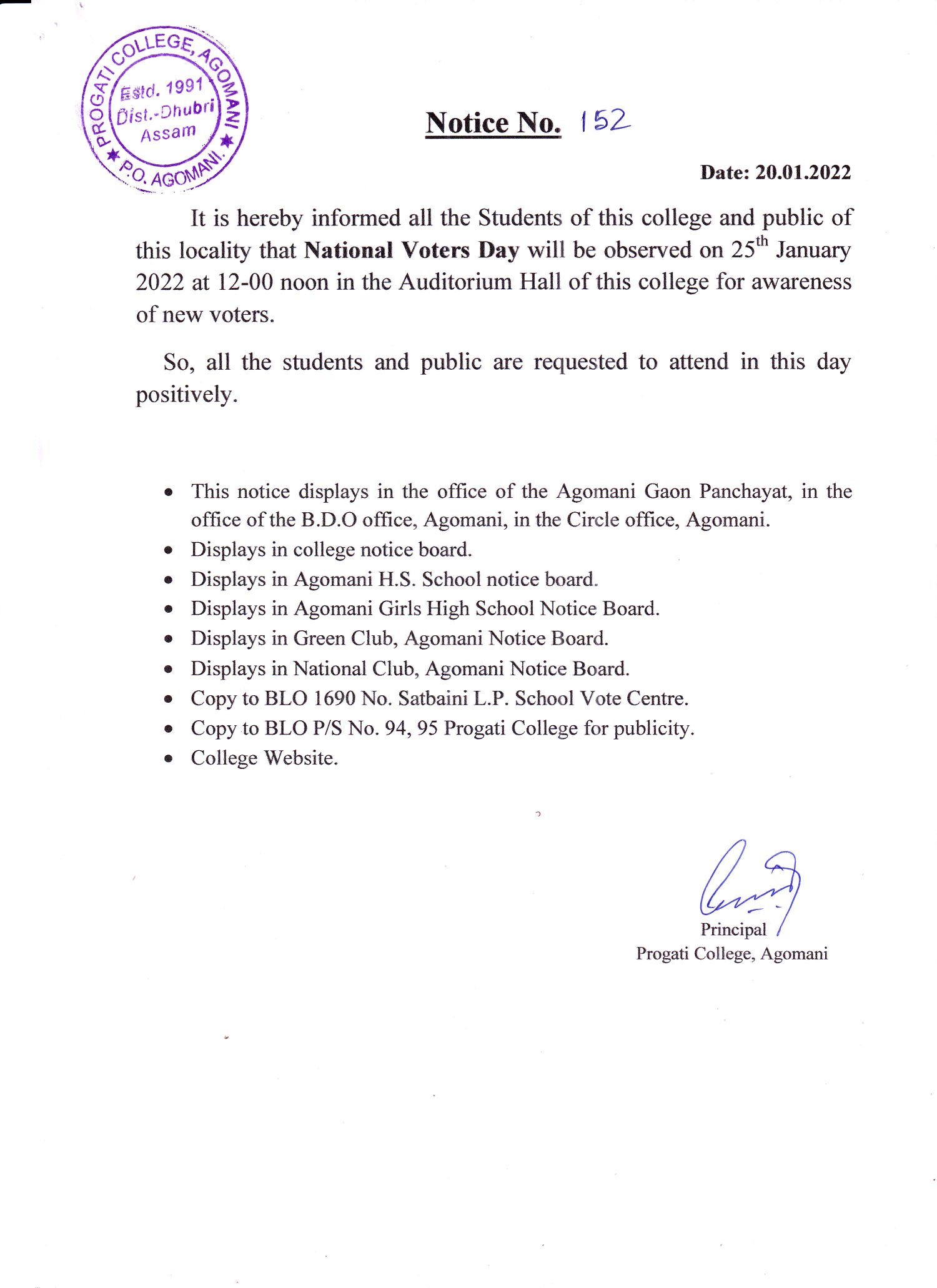 Notice for National Voter's Day |