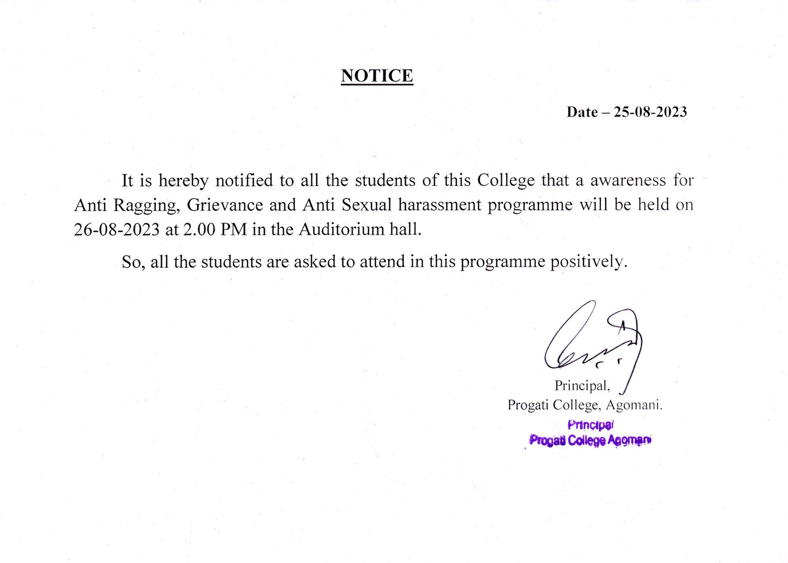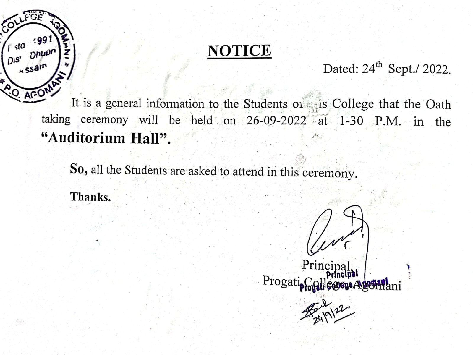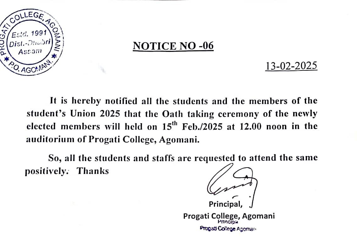 Notice for Students' Union Election Oath taking Ceremony 2025 |