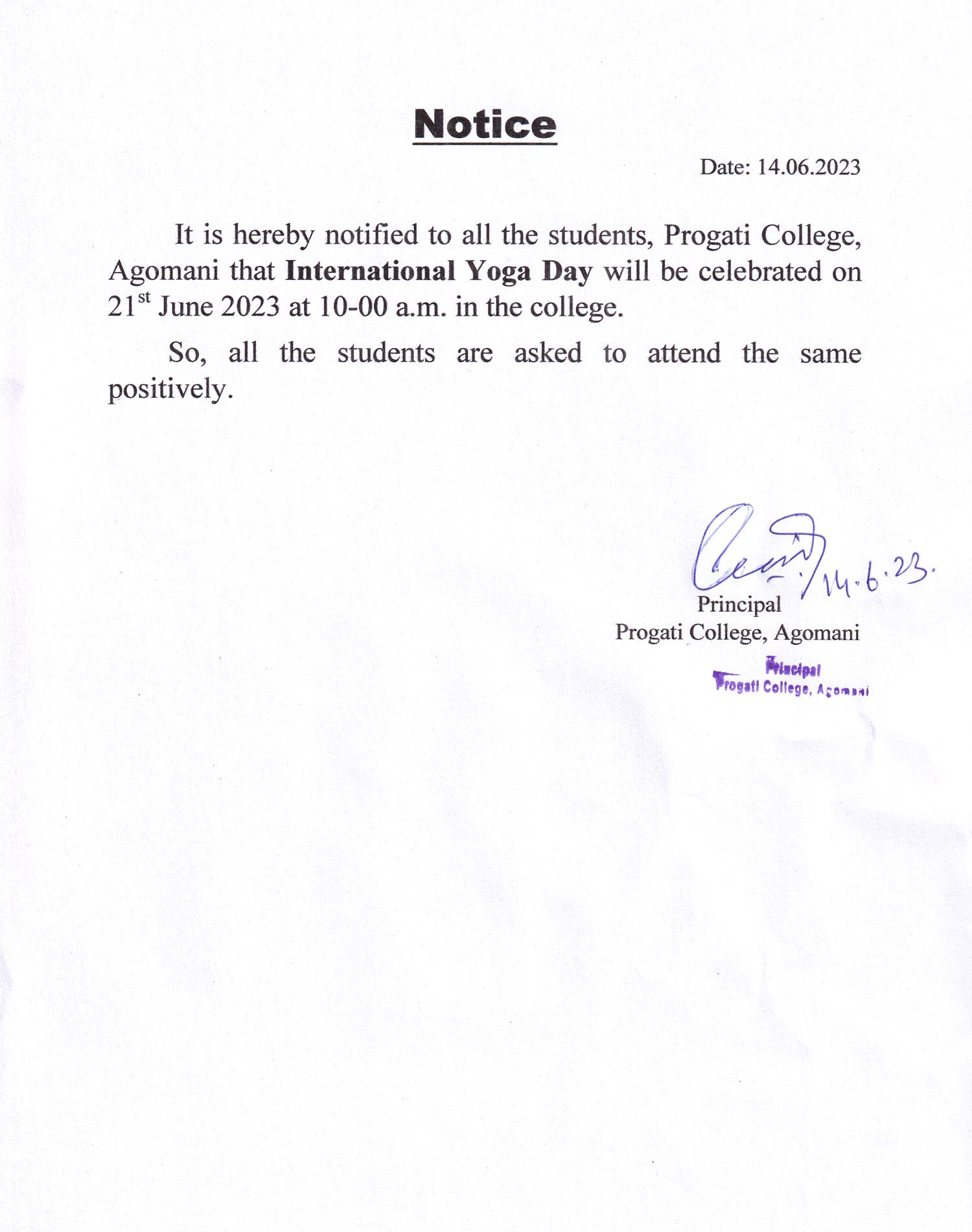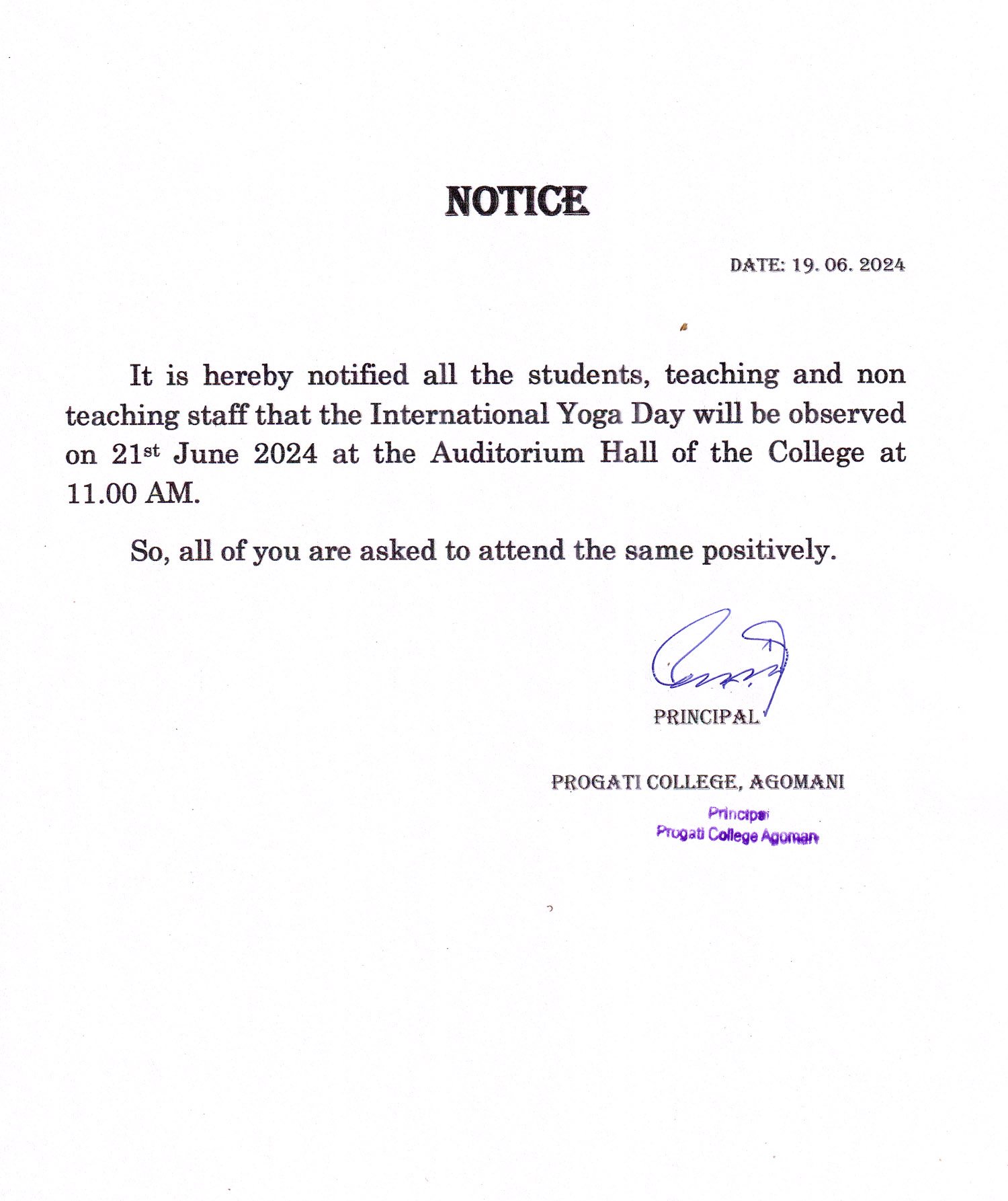 Notice for International Yoga Day |