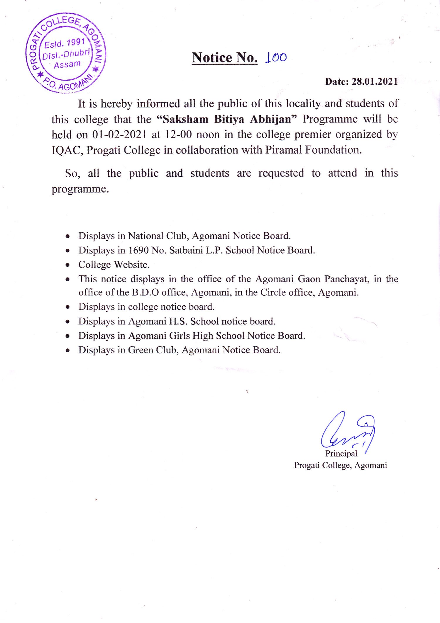 NOTICE FOR SAKSHAM BITIYA ABHIJAN |
