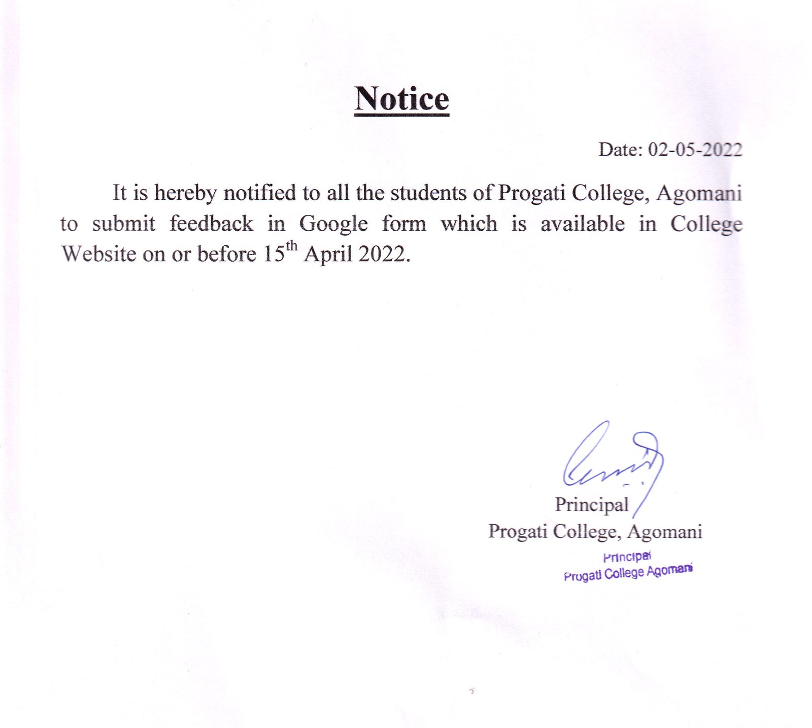 Notice for Feedback 2022 |