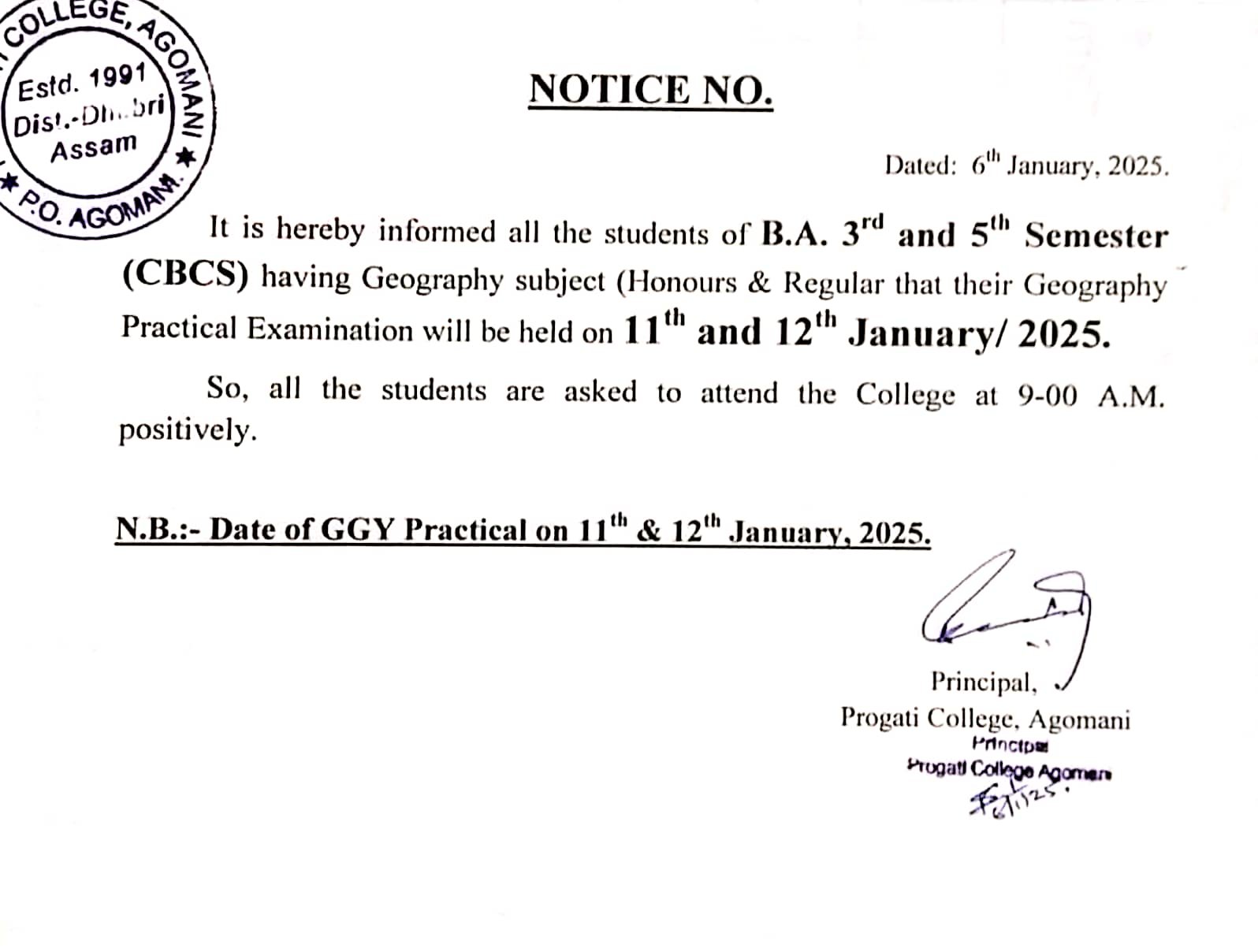 Notice for B.A. 3rd & 5th Semester Geography Practical Examination 2025 |