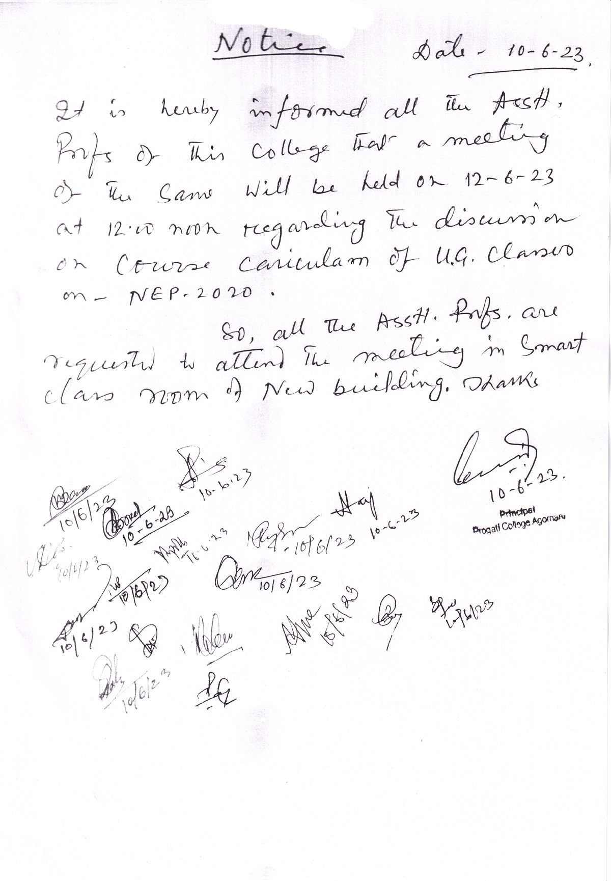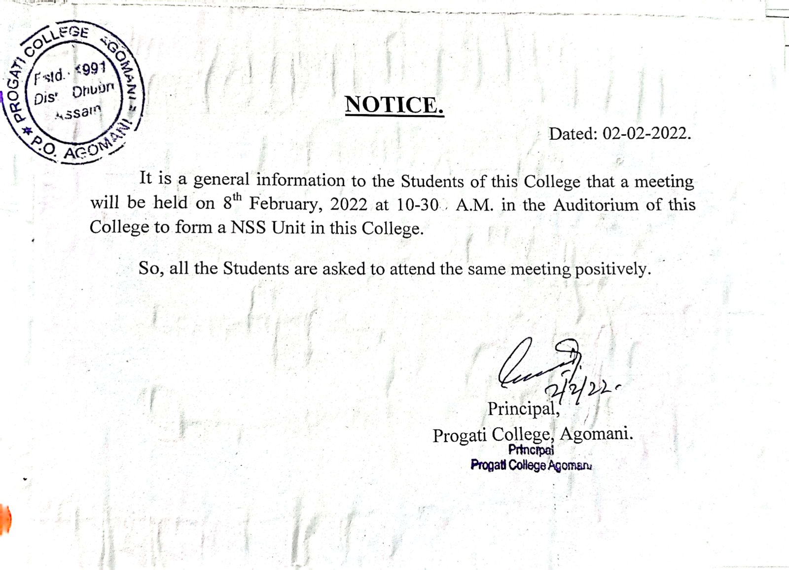 Notice for NSS Unit Meeting |