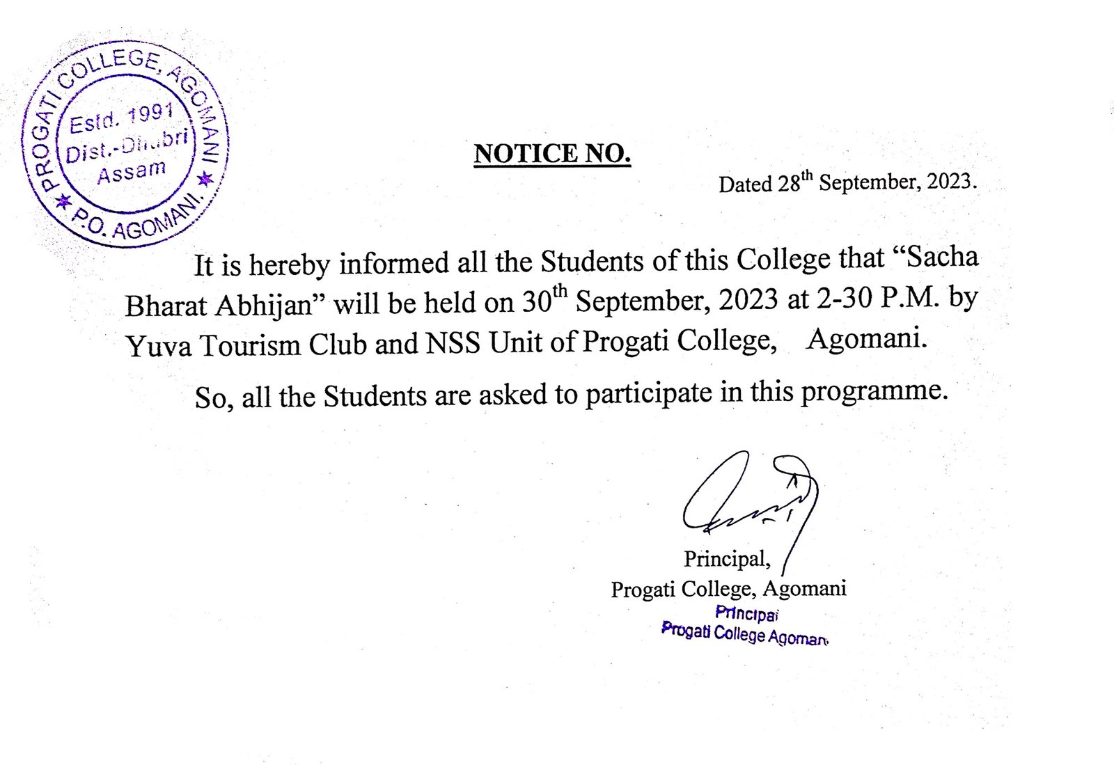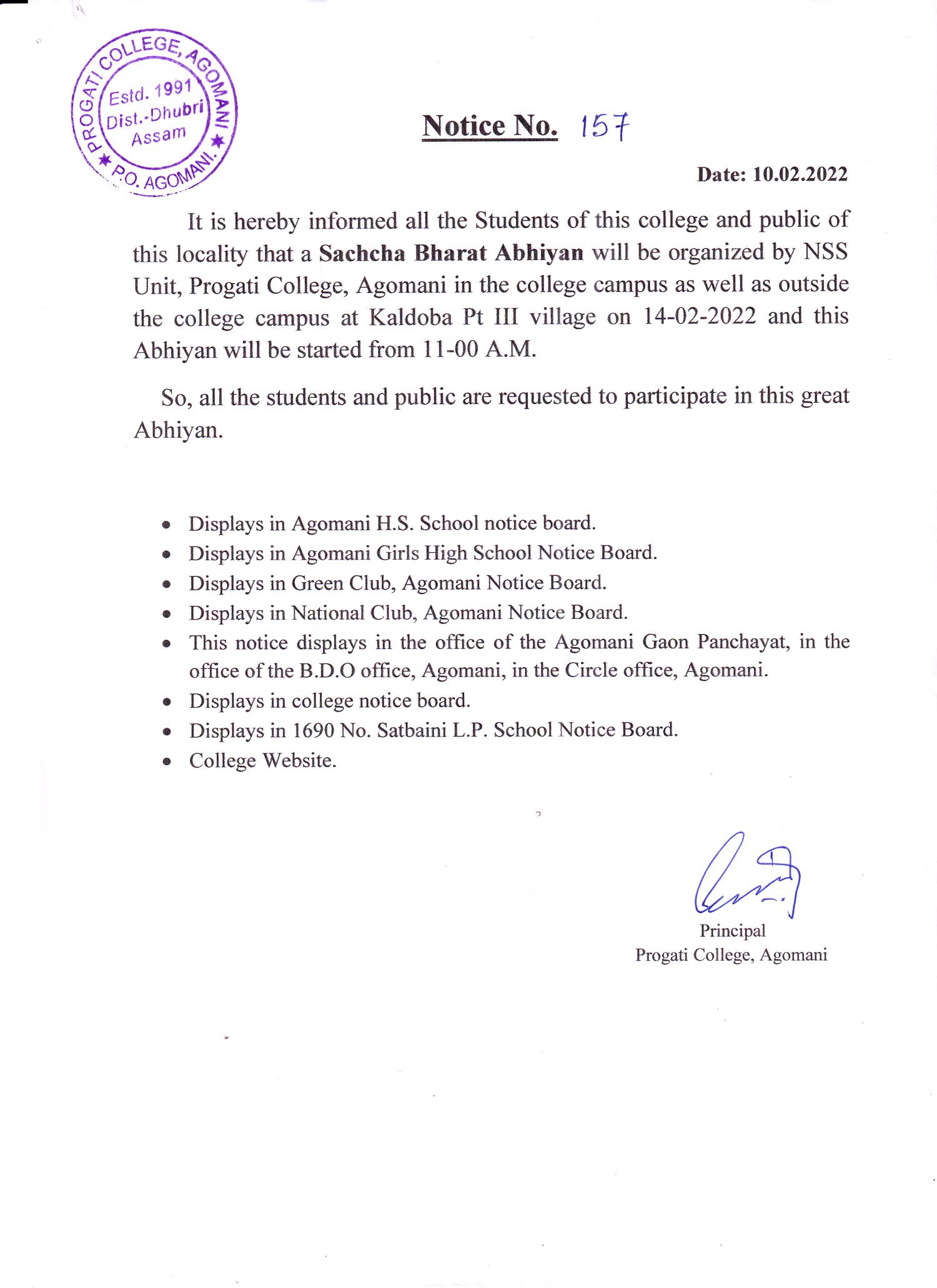NOTICE FOR SACHCHA BHARAT ABHIYAN |